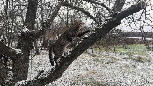 Вот так вот с утра мы с Мэри идем на зарядку! Кошка🐱👤 на дереве🌲