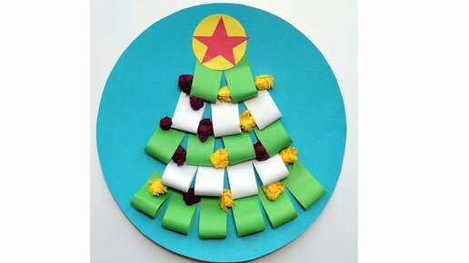 Елка. Аппликация на новый год. Поделки из бумаги для детей 6, 7, 8, 9, 10 лет.