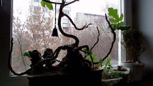 Инжирное деревце. Мой первый бонсай. Собрался зимовать и сбросил листья