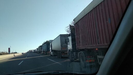 Красота Хаджибейского лимана, а на въезде в Одессу огромная вереница фур, которых на КПП не пропускают
