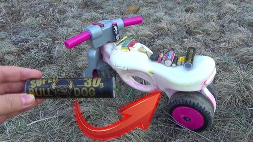 МОЩНАЯ ПЕТАРДА+МОТОЦИКЛ,взрываем петардами большую игрушку