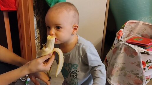 Как нужно правильно есть банан. Показывает годовалый ребенок.