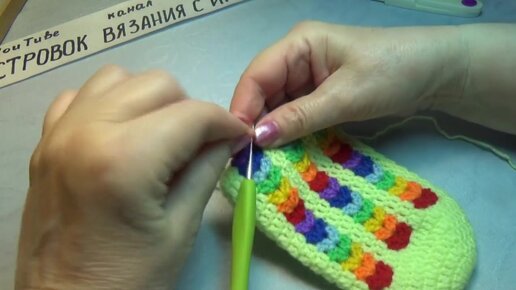 Домашние следки крючком_тапочки без швов _радуга_ #673