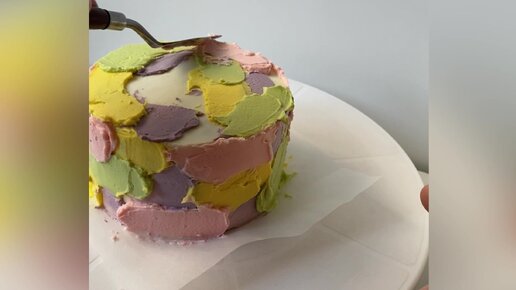 Показываю, как я делала тортик в корейском стиле. Популярный сейчас тренд - небрежные кремовые мазки на торте.
