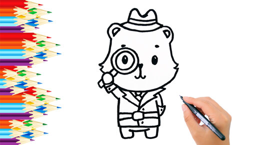 Как нарисовать медведя детектива / Рисунок раскраска для детей / Раскрась Ка
