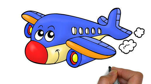 Как нарисовать самолёт, в нашем видео можно увидеть как рисуется красивый самолётик с глазами, крутые рисунки для детей, ИЗО