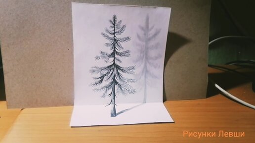 Рисуем на листе объёмную 3d иллюзию "Хвойное дерево". Рисунок, а будто настоящая.