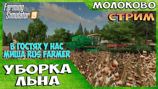 УБОРКА ЛЬНА, в гостях Миша Rus Farmer, Artic ✸ карта с.Молоково - стрим ✸ Farming Simulator 19