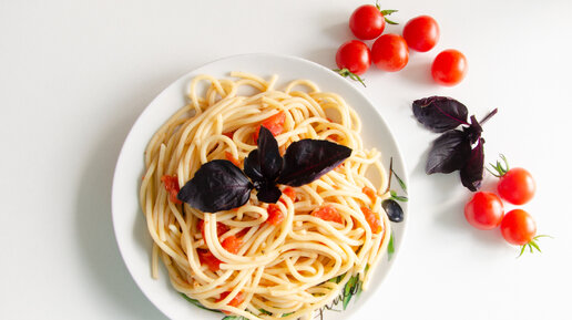 Спагетти с томатным соусом и базиликом