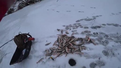 Опустил под корягу. Мешок рыбы с лунки. Первый лед 2021