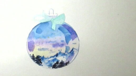 Новогодние рисунки. Рисуем ёлочный шарик с зимним пейзажем