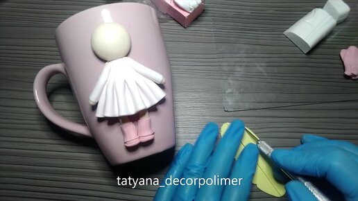 Процесс лепки зимней куколки на кружке из полимерной глины) Часть 3)))