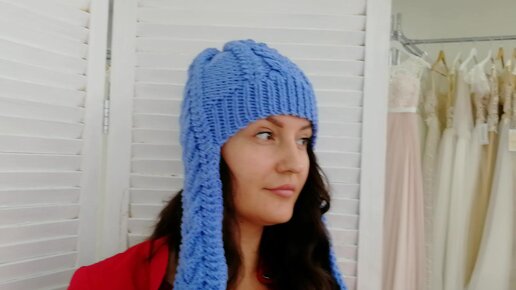 Голубая шапка ушанка косами