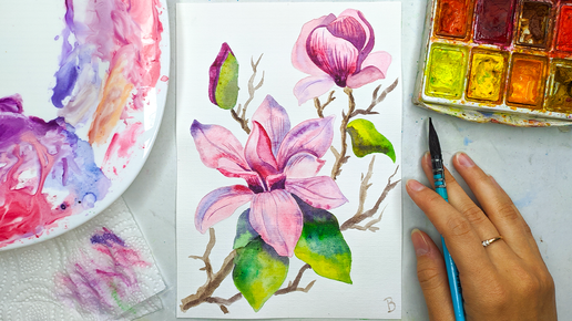 Как нарисовать магнолию акварелью поэтапно. Акварель для начинающих