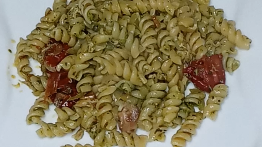 Зелёные макароны с вялеными помидорами