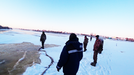 Что происходи на реке. Толпа людей на льду. Жизнь в деревне.