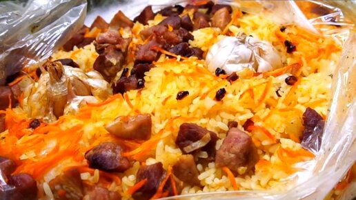Плов с мясом в рукаве для запекания. Ужин без хлопот, ничего не подгорает, и стоять у плиты не нужно
