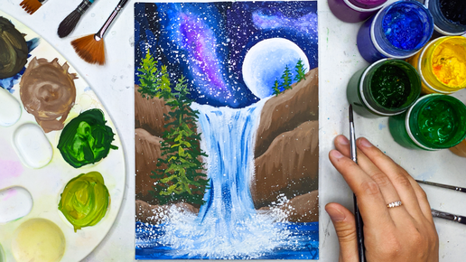 Как нарисовать водопад гуашью поэтапно. Красивый пейзаж гуашью для начинающих