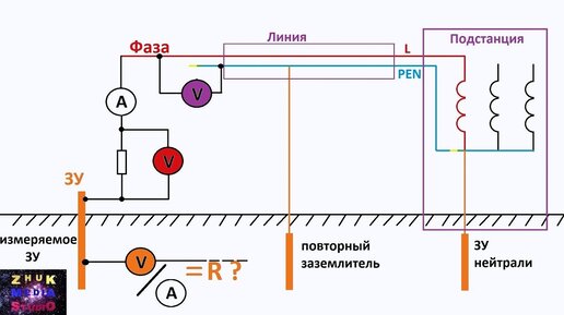 Измерение сопротивления заземления с помощью амперметра и вольтметра