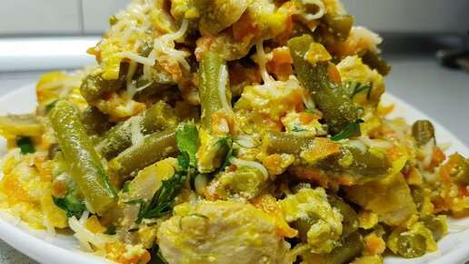 Отвариваю стручковую фасоль и готовлю самый вкусный салат с курицей и грибами. Делюсь рецептом .