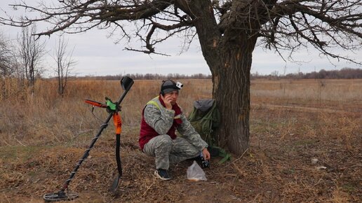 Выходной деть на природе с металлоискателем. В поиске клада. Поиск монет.