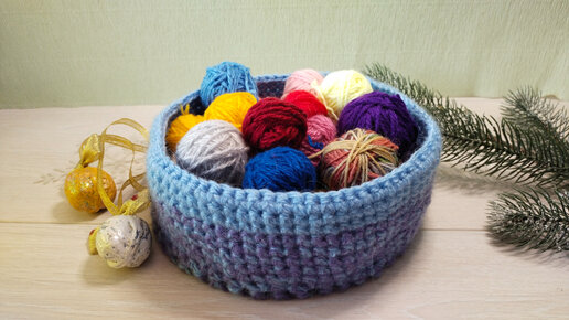 Связала корзинку для маленьких клубочков пряжи. Из подручных материалов.