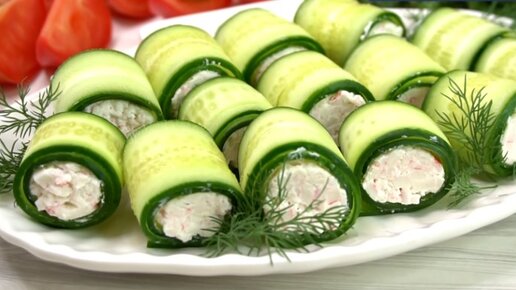 Закуска из свежего огурца на праздничный стол, по вкусу напоминают роллы филадельфия