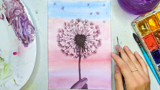 Как нарисовать одуванчик акварелью поэтапно. Акварель для начинающих