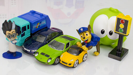 Ам Ням и Щенячий Патруль катаются на машинках! Видео с игрушками для детей.