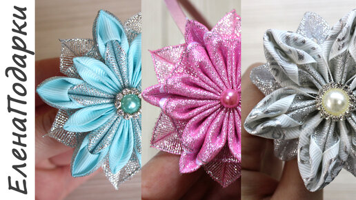 3 варианта снежинок из лент в технике канзаши