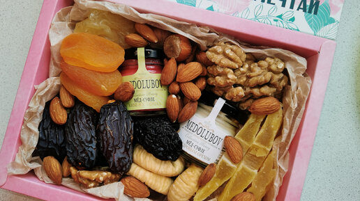 Презент для мамы. Мастер-класс по сбору подарочной коробки с сухофруктами и мёдом на День матери