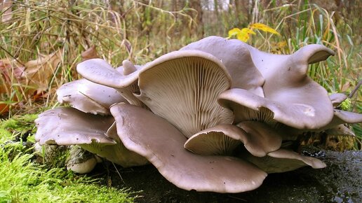 Грибы Вешенки в Лесу над ручьем.
