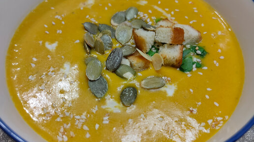 Суп-пюре из тыквы. Вкусный и быстрый рецепт. Вариант постного супа.
