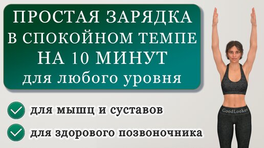 Простая зарядка в спокойном темпе на 10 минут: мягко разминаем мышцы и суставы