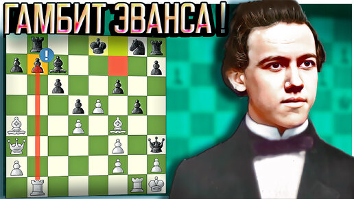 Морфи яростно атакует в гамбите Эванса, жертвует ферзя и ставит мат. Нью - Йорк, 1857. Шахматы
