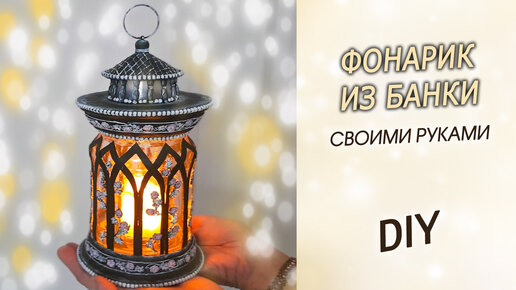 Как сделать ДЕКОРАТИВНЫЙ ФОНАРИК ИЗ стеклянной БАНКИ, крышек и картона. Своими руками / DIY