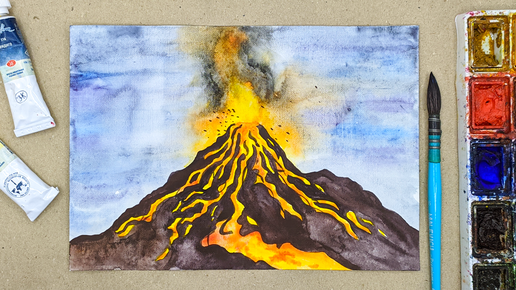 Как нарисовать вулкан акварелью поэтапно. Акварель для начинающих