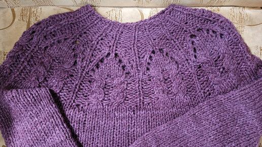 Пуловер с круглой кокеткой спицами попетельный мастеркласс