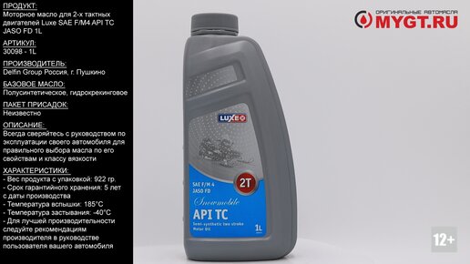 Моторное масло для 2-х тактных двигателей Luxe SAE F/M4 API TС JASO FD 1L #ANTON_MYGT