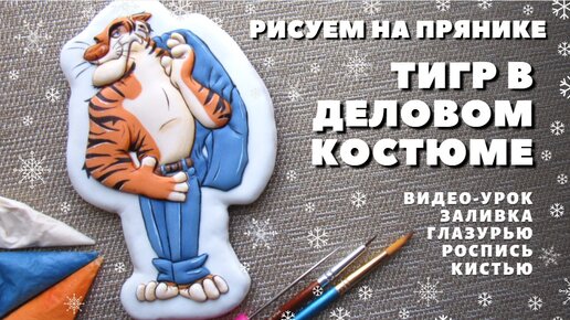 Пряник Тигр в деловом костюме. Роспись пряников