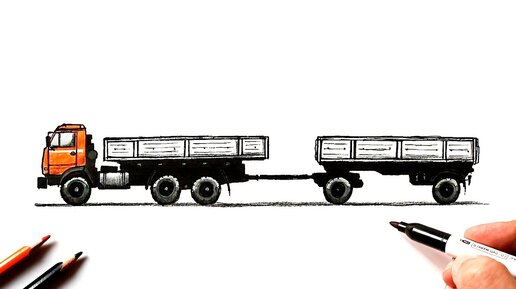 Как нарисовать Камаз с прицепом