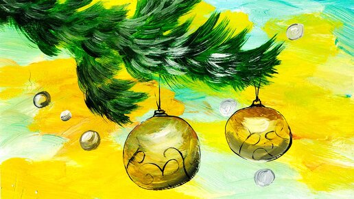Рисуем шарики на елке. Рисуем Новогодний рисунок. Новый год гуашью.