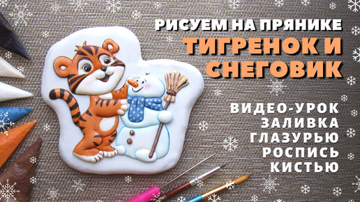 Пряник Тигренок со снеговиком. Роспись пряников.