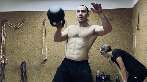 Тренировка с гирями. Рывок гири. Стойка на руках. Пресс. Отжимания на кольцах. Подтягивания на кольцах. Планка.