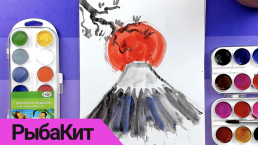 Рисуем ПЕЙЗАЖ японский акварелью Фудзи и Сакура