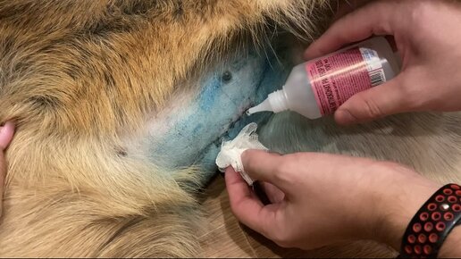 Обрабатываем швы нашей девочке Альфе🐶❤️