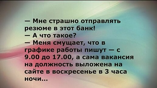 - Мне страшно отправлять резюме в этот банк! - А что такое? - Меня смущает, что в графике работы пишут..