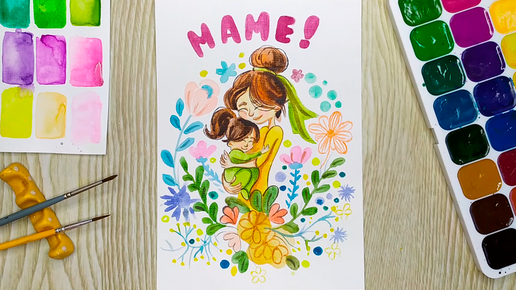 Как нарисовать рисунок ко дню матери поэтапно. Красивый рисунок медовой акварелью.