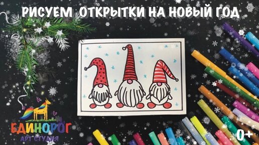Как нарисовать открытки на Новый год. Рисуем просто. Уроки рисования для детей.