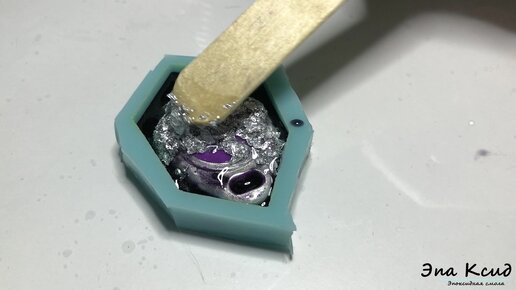 Заливаю свой ключ от домофона эпоксидкой. Теперь, это самый роскошный и полезный брелок с серебристыми кусочками